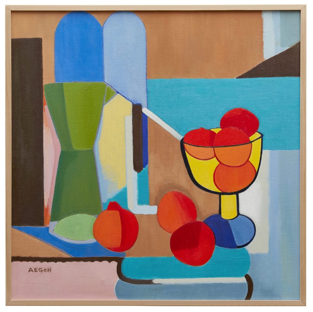 AeGoh, Bottle and Plums, 2021, Oil on canvas, 72.7 × 72.7 cm