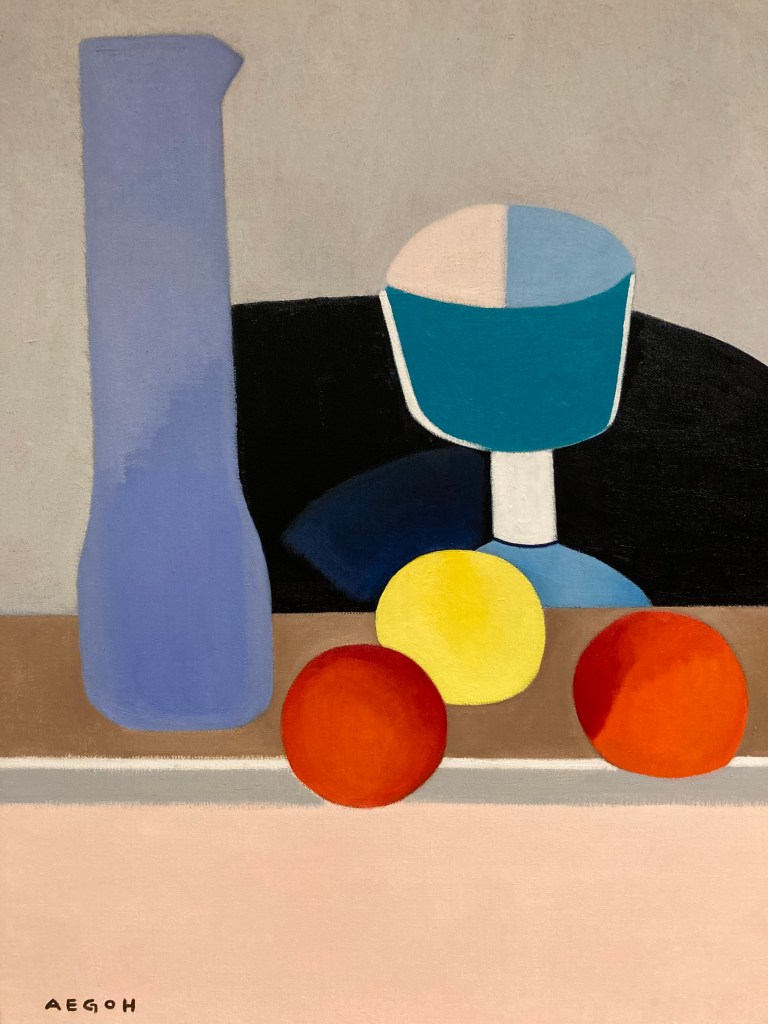AeGoh, Tall Bottle and Orange, 2022, Oil on canvas, 72.7 × 50 cm