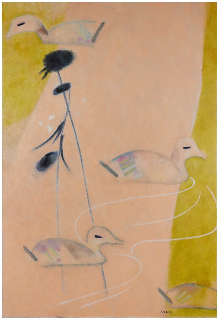 AeGoh, Ducks by the Water, 2022, Oil on canvas, 130.3 × 130.3 cm
